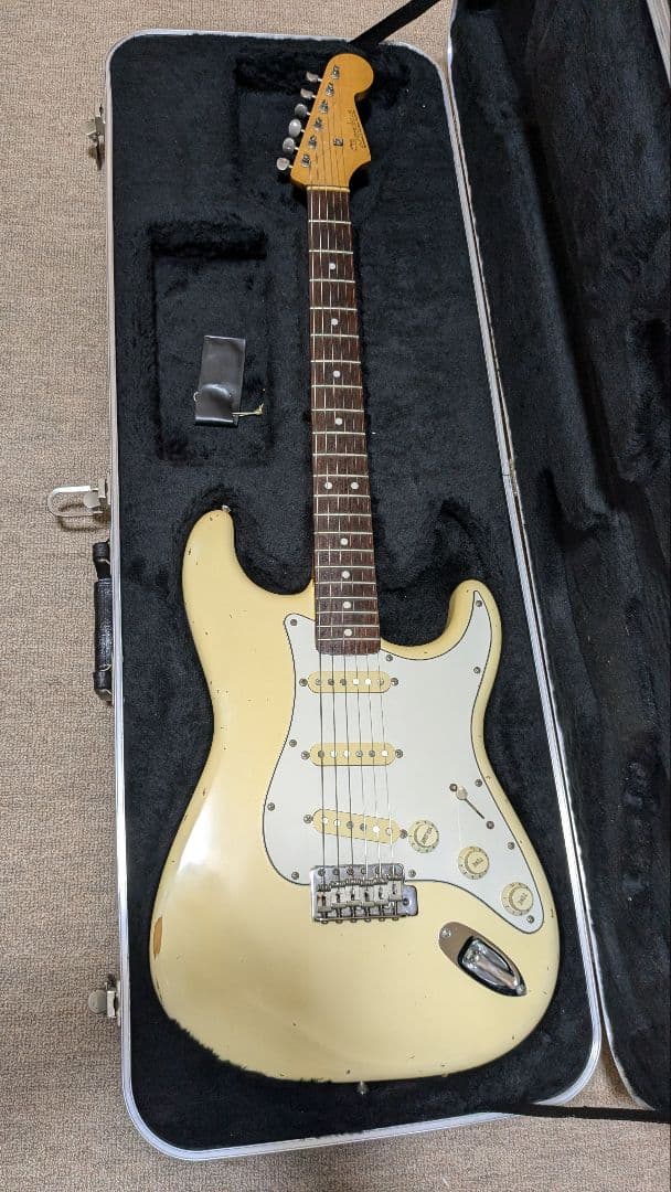 ヘッドに『F』の記載がありますが、メーカー名不明と、させていただきます。本体の状態としては、ボディ塗装のくすみ、ストラップピンの移動してるらしく、移動の際の穴も開いております。ピックアップに古いタイプの『EMG』を搭載しております。状態としては、悪いですが一応、アーティストモデルの『コピー』のようで、あまり目にしない『ギター』です。プレイヤーズコンディションです。 デッドストックで、所有していたものになります。 付属品は、ハードケースのみになります。 即購入『OK』値下げ交渉『不可』ノークレーム、返品不可早期終了にも対応いたします! 種類···エレキギターカラー···ブラック系