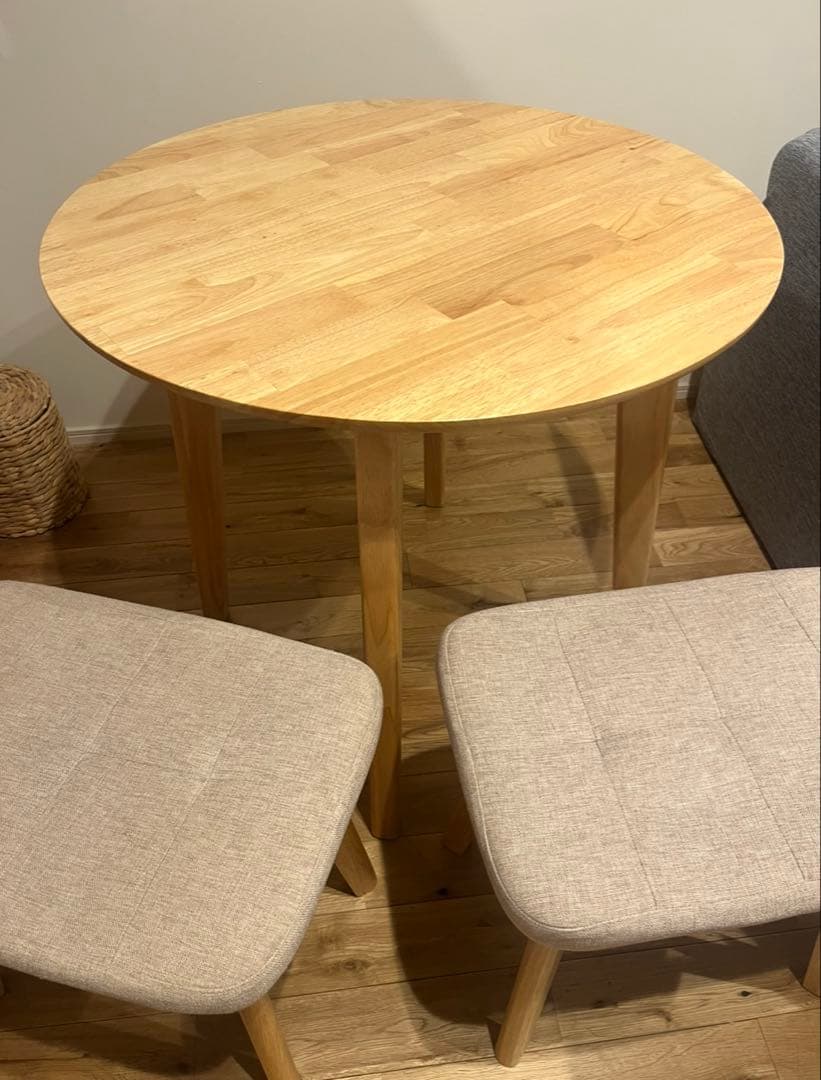 【飛騨産業】キツツキ ヴィンテージ ダイニングテーブル ラウンド 円形\r\r#フィット_飛騨産業の出品一覧\r#フィット_テーブルの出品一覧\r#フィット_出品一覧\r\r飛騨産業は、日本を代表する老舗の家具メーカーです。飛騨産業の歴史は1920年に飛騨高山に西洋の曲げ木の技術が伝わったのがはじまりです。飛騨の匠の伝統技術をもって、飛騨の山々に密生する「無用の長物」とされていたブナ原生林を資源に、西洋家具メーカーとして誕生しました。国内最高峰の技術力を誇る飛騨産業の曲げ木の技術で、難易度の高いデザインを具現化してきました。人気の森のことばシリーズをはじめ、楢や杉を使った多くのプロダクトを展開。「キツツキマークの家具」として世界にも知られている家具メーカーです。\r\r傷、スレ、汚れがあります。\r脚先のアジャスターが2箇所固くて回せませんでした。\r\rサイズ:約幅105cm 奥行き105cm 高さ70cm\r\rUSED品の為、相応の使用感、スレや傷などがあります。\rまだまだ末長くご使用いただけるコンディションです。\r\r天板の形状...円型